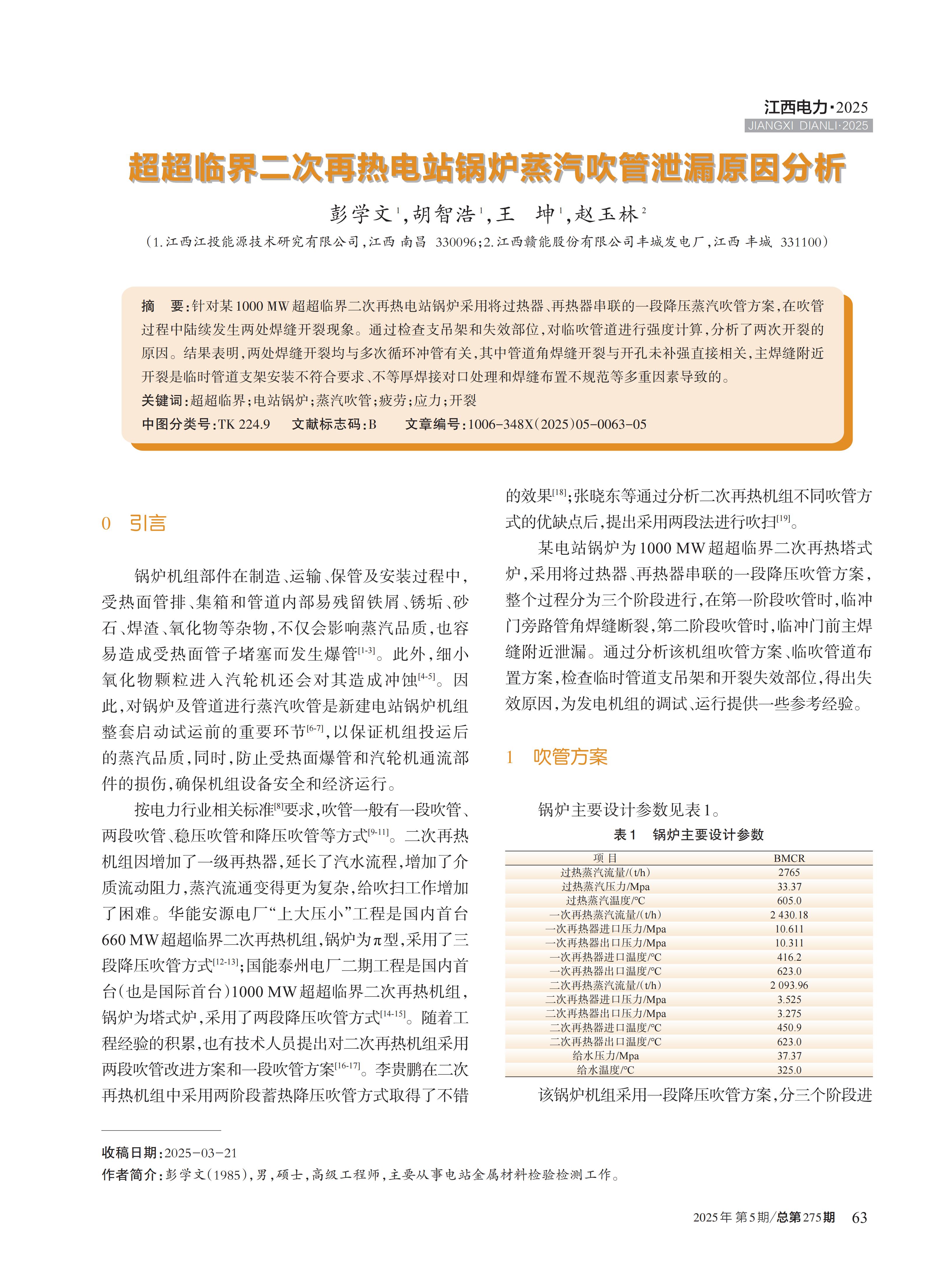 [16] 张幼林,刘嘉 . 二次再热机组二段吹管方法的选择[J]. 锅炉制造 .2022(01)∶22-23.