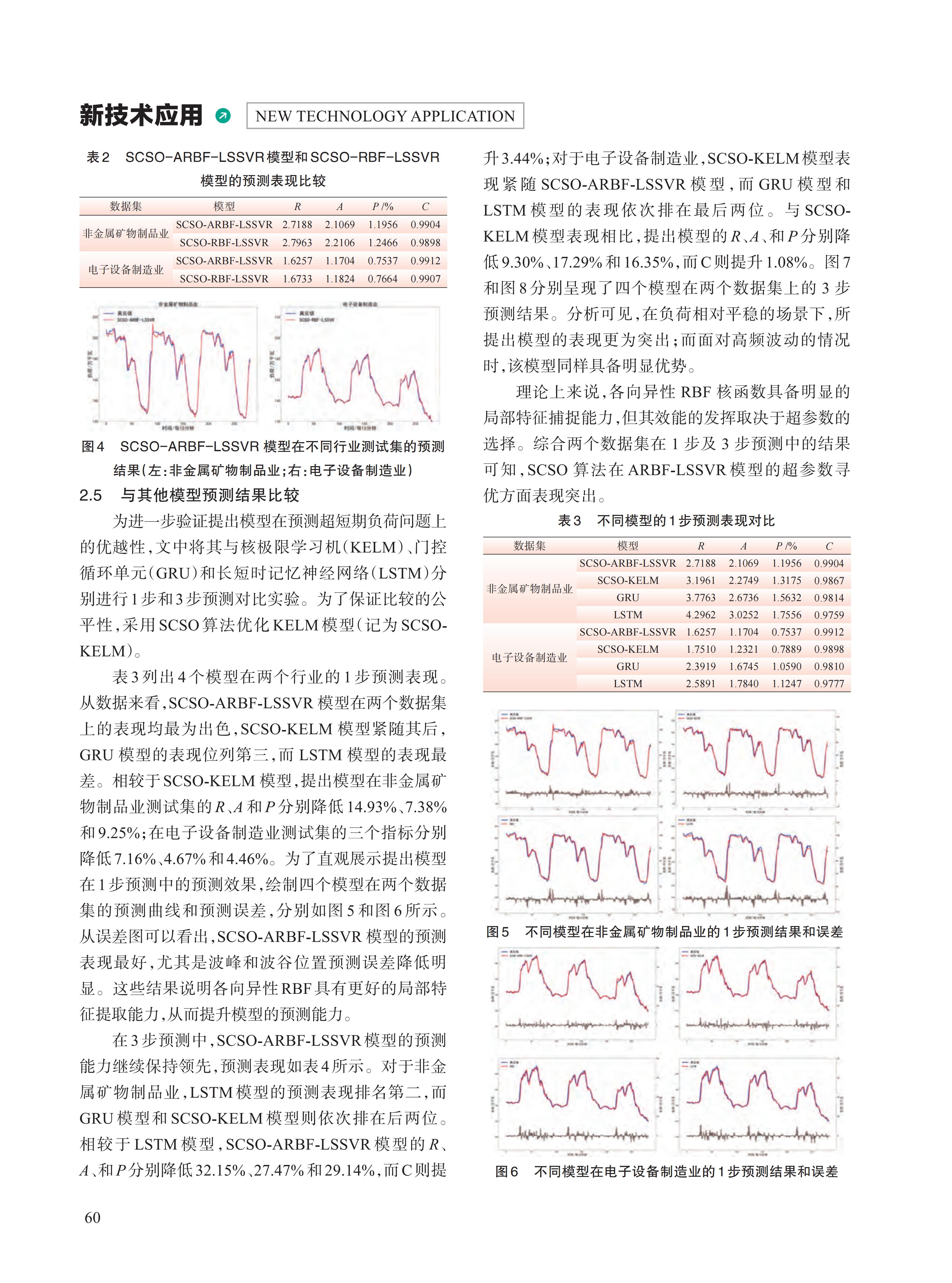随着电力系统规模扩张与复杂度攀升,精准的超短期电力负荷预测对系统稳定运行和经济调度的重要性日益凸显。针对基于径向基函数(RBF)核最小二乘支持向量回归(LSSVR)模型的局限,文中创新性提出融合各向异性RBF核的 LSSVR模型(ARBF-LSSVR),并引入沙猫群优化算法(SCSO)进行参数寻优,构建 SCSO-ARBF-LSSVR模型。基于江西省 2024 年 9 月两个行业的 96点数据集,对所提出模型的有效性展开验证。实证结果显示:在 1步、3步负荷预测中,SCSO-ARBF-LSSVR模型的预测表现均显著优于其他基准模型。这一结果充分说明 SCSO-ARBF-LSS- VR模型优异的预测能力与良好的应用前景,为电力系统的高效运行与科学规划提供强有力的技术支撑。