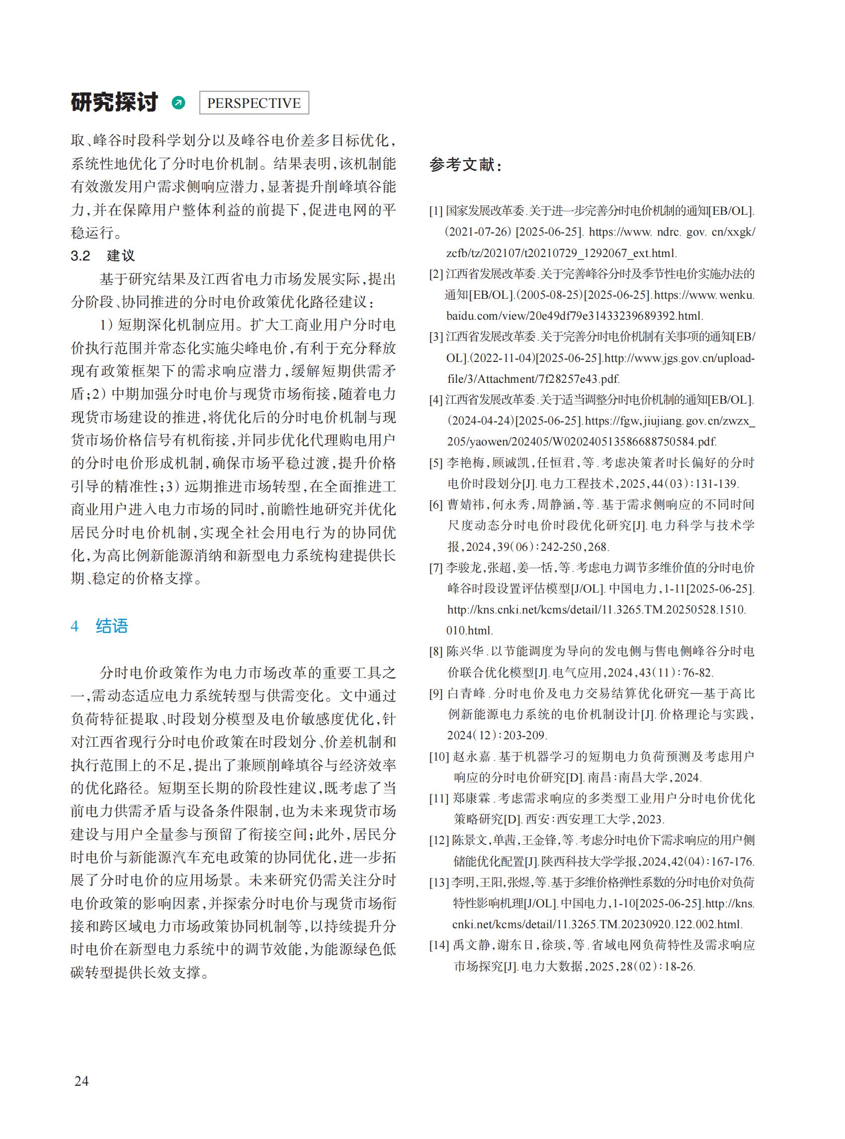 [2]江西省发展改革委 .关于完善峰谷分时及季节性电价实施办法的 通知[EB/OL].(2005-08-25)[2025-06-25].https://www.wenku. baidu.com/view/20e49df79e31433239689392.html.