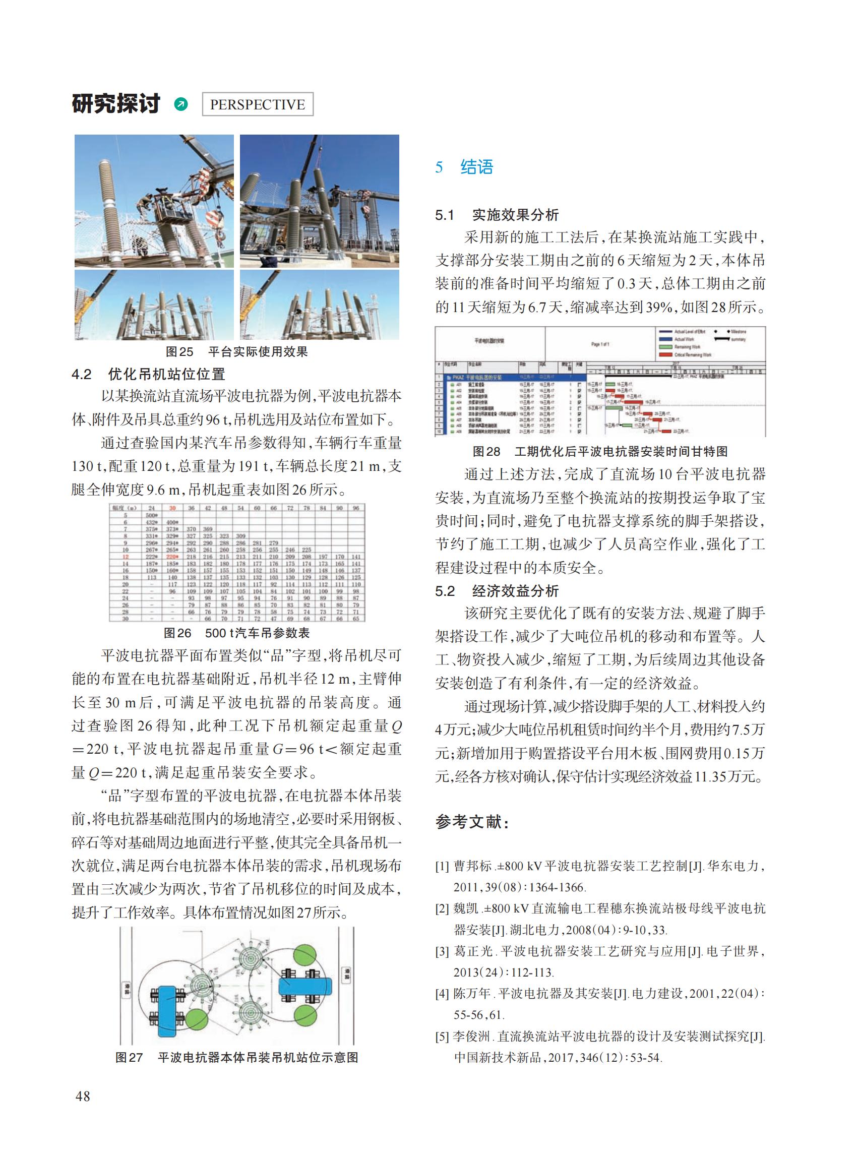 平波电抗器是特高压换流站直流场安装难度最大的主设备,安装过程需要占用的面积较大,因此在其安装 完毕后才能进行周围其他设备的安装,其安装过程是整个直流场设备安装工程的关键环节。文中对平波电抗器安 装工法进行了研究,使其安装工期缩减 39%,实现经济效益 11.35万元,对指导同类型特高压换流站平波电抗器安 装具有指导意义。